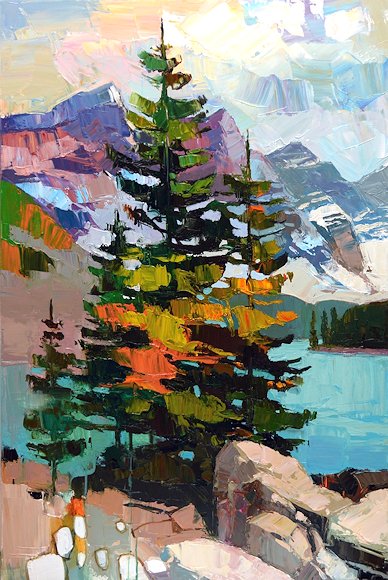 His early work was often done en plein air in an impressionistic style but as time passed the work eventually evolved toward semi-abstraction and abstract impressionism.
